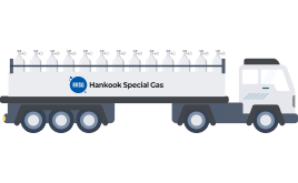 대량의 가스를 탱크로리, 튜브트레일러로 운반하여 공급합니다.